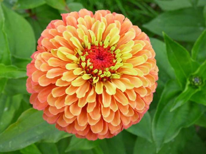 Zinnia Elegans Queeny Lime Red / Across (7 cm), packed with soft orange and trendy lime petals.. Golden yellow (shown), deep red, orange, carmine rose, coral, lime, wine, purple. Zinnia elegans 'queeny lime orange'. Zinnia elegans 'queeny lime red'. Exotic and unusual bicolor zinnia. Photo courtesy of all america selections.